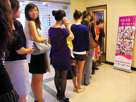 記者在面試現場看到,當天前來應征的靚女當中,絕大多數在首輪就被淘汰,進入到第二輪的只有五名。這五名中又有三位在過第三關———面談關時被淘汰了,只有兩人獲得與富豪見面的機會。三位靚女被淘汰的原因很簡單,一位因家里是母親做主,被認為“太強勢”,不合要求;一位因有“許多個男性朋友”,被認為用情太泛、不專一,被淘汰;還有一位是因為打扮不得體、談吐大大咧咧,也被認為不合要求。 應征動機,多否認“逐富”