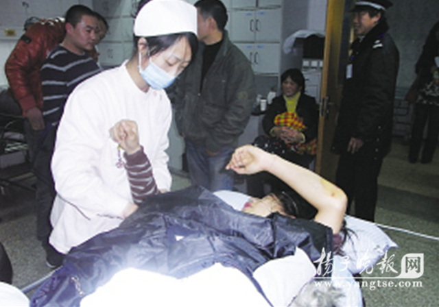 在中大醫院急診室,一女子拉著參與救人的兩位熱心女子,流著眼淚感謝她們。據她講,受傷的是其妹妹,叫朱貴娟,今年23歲,是一家婚紗店的攝影師。當時她下班騎車回家,沒想到遭遇車禍。多虧好心市民幫忙,兩位大姐陪同妹妹來到醫院看傷,她們還墊付了1000多元醫藥費。