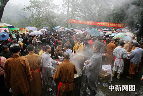 中新網重慶1月22日電 (孟幻)今天是中國農歷臘月初八,天空雖然飄著小雨,有些許寒意,數萬山城市民仍是涌入當地華巖寺喝臘八粥,過臘八節,期望來年增福增壽。