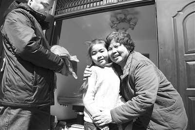 ▲昨日上午被救兒童謝雨珊的父親帶著女兒來到金婆婆家表示感謝,金婆婆當即認謝雨珊為干孫女。