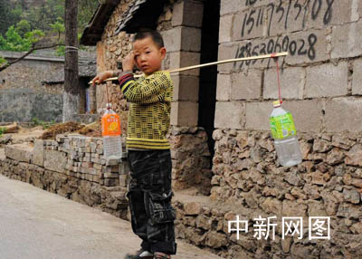中新網(wǎng)興義3月29日電 (曹多然 章瑩)黔西南旱情目前仍在持續(xù)。3月29日,記者此間在貴州旱區(qū)走訪中發(fā)現(xiàn),當(dāng)?shù)卮迕袢駝訂T,通過找水、買水等方式積極開展自救,取水路上不時可見稚齡“小水童”的身影。貴州興義市白碗窯鎮(zhèn)柳樹坪村8歲的劉凱就是其中的一員。