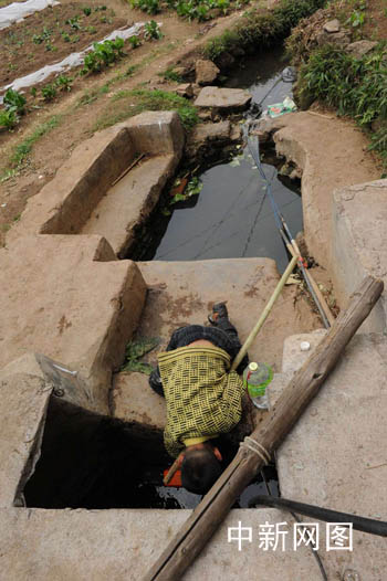 小劉凱告訴記者,受持續(xù)干旱缺水影響,他到村莊到遠(yuǎn)處取水已經(jīng)有一周時間了。由于供村里食用的水源在慢慢減少,每天中午放學(xué)后,劉凱都要擔(dān)著自己的“水桶”到遠(yuǎn)地“打水”,往返需要近半個多小時。據(jù)記者上前仔細(xì)察看,小劉凱取水之地作為村里為數(shù)不多的水源之一,渾濁的水面難以見底,水源質(zhì)量令人擔(dān)憂。
