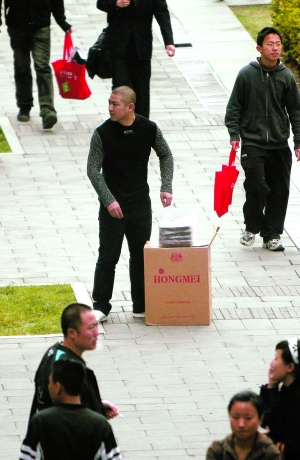 因?yàn)楹酗堎u得好,不少人叫來老鄉(xiāng)一起幫忙。在通往展館東門的通道上,游商站成一排叫賣。據(jù)了解,這些人主要分部在展館的中央餐飲區(qū)與各通道上,他們有固定組織,每人有規(guī)定的“經(jīng)商”范圍。