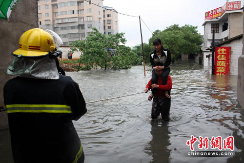 中新網長沙5月21日電(劉柱)今年入汛以來的第四輪暴雨從昨晚開始襲擊湖南大部分地區,今日上午10時許,湖南長沙市岳麓區魚塘小區發生嚴重內澇,最深積水達2米多深,大部分民宅一樓進水。險情發生后,長沙消防官兵迅速轉移被困居民,所幸未造成人員傷亡。