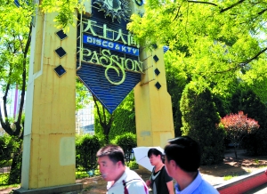 位于東三環邊的“天上人間”標牌。5月11日夜,這家“被神話”的夜總會,因存在有償陪侍被有關部門勒令停業6個月。樊甲山 攝