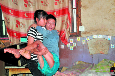 劉楨原本有個(gè)還算幸福的家庭,可在當(dāng)年的一場(chǎng)礦難中,作為礦工的劉中心被壓斷了脊椎,腰椎受損,神經(jīng)受到破壞,從此落下了半身不遂,大小便失禁,生活不能自理。一年之后,其妻子因不能忍受貧寒改嫁他鄉(xiāng)。那一年劉楨才5歲,家庭所有的生活重?fù)?dān)全部壓在了她稚嫩的肩上。