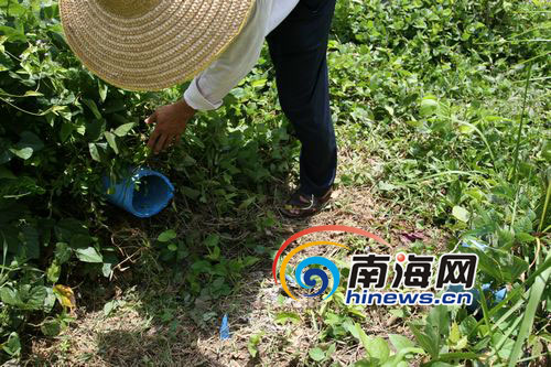接到反映,南海網記者趕到位于牛嶺隧道旁的南海天闕.銀牛嶺度假別墅酒店項目工地,在工人們的帶領下,記者找到工地的蓄水池。在蓄水池下方的草叢中,被砍斷的水管赫然出現在記者眼前。