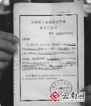 雖然有了派出所的回應,但既然網上還有記錄,這一紙證明能代表什么?張建和苦等了一個多月,沒有得到建水縣有關部門的答復之后,又找到省公安廳禁毒局。據張建和說,當時民警看完他的資料,并落實了情況之后,首先在電腦上把他關于在逃吸毒人員的信息進行了屏蔽。但張建和說,這種屏蔽,依然不能確保在省外使用身份證入住酒店或是出境時沒有問題。張建和向記者出示了一份由云南省公安廳控告申訴辦公室出具的來訪處理單,上面要求紅河州公安局:“張建和反映建水縣西莊派出所民警將其陷害為吸毒人員錄入信息,要求查清事實,恢復名譽,賠償損失,先介紹到你處,請接洽!”