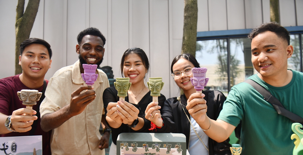 近日,來自柬埔寨、古巴、馬來西亞、菲律賓的五位外國青年,跟隨“‘Z世代’畫像中國”網(wǎng)絡(luò)互動活動來到四川省廣漢市三星堆博物館,認(rèn)真了解歷史,記錄精美文物,感受古蜀文明。同時,大家還打開了三星堆主題盲盒,品嘗了三星堆文創(chuàng)冰淇淋,收獲滿滿。
