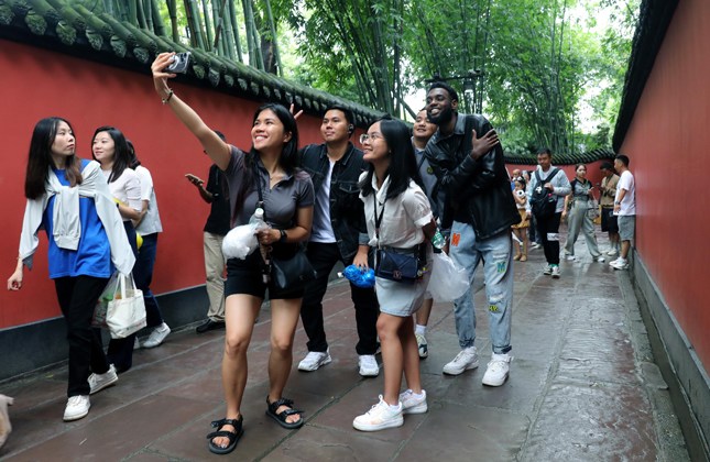 來自柬埔寨、馬來西亞、古巴、菲律賓的5位外國青年“問道青城山,拜水都江堰”,在幽幽山水中領(lǐng)略中國歷史與自然的美妙結(jié)合。