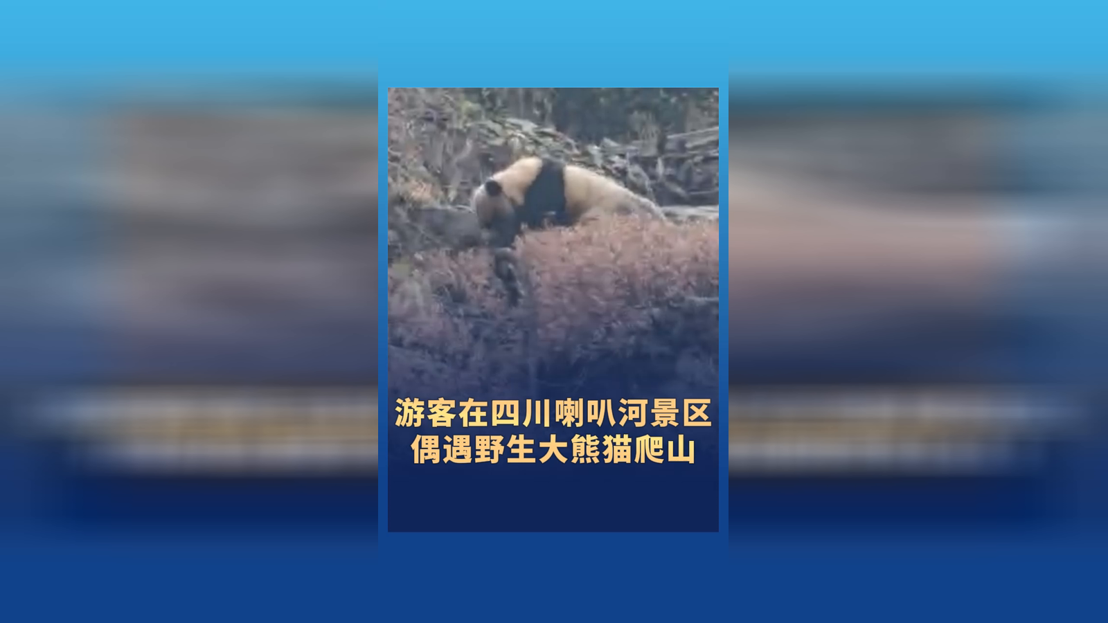四川天全:游客在喇叭河景區偶遇野生大熊貓爬山