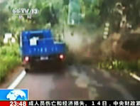 臺(tái)灣一男子徒手抓到一條很長的蛇去警局報(bào)案,警察被嚇到。
