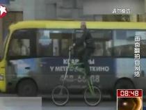 俄羅斯驚現(xiàn)“自行車牛人” 高低自如不擋眼