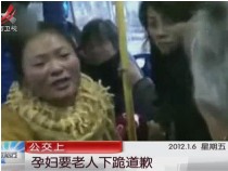 孕婦乘公交與老人沖突 逼白發老人下跪道歉