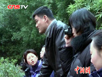 姚明參觀成都大熊貓基地 不及熊貓搶鏡