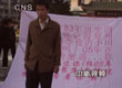 男子鬧市掛條幅找