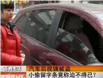 汽車后視鏡被盜 小偷留字條稱迫不得已