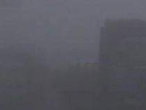 四川樂山遭遇大霧天氣 大貨車排隊