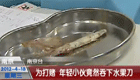 為打賭 年輕小伙吞下水果刀