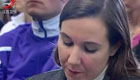 美女主持人直播球賽 被足球砸中腦袋
