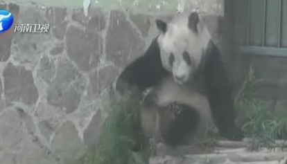 實拍大熊貓刷小脾氣卡主屁股自脫身