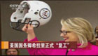 希拉里時隔一月重回工作崗位 獲贈防護頭盔