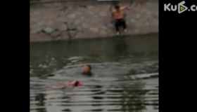 男子發現鴨子被凍湖面 跳湖破冰救援