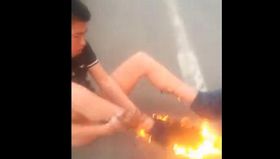 北京6車相撞爆燃 火燒男子