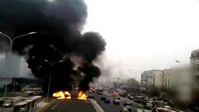 實拍北京多車相撞爆燃 現場黑煙滾滾