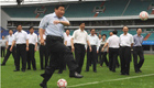 美女主持人直播球賽 被足球砸中腦袋