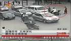 監拍悲催摩托男連撞四車后沖進深坑