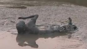 七旬老太誤入泥潭變“泥人”痛苦掙扎