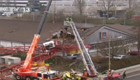 實拍德國一建筑吊車墜落砸塌超市