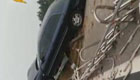實拍:司機春困打盹 轎車"騎上"中央護欄
