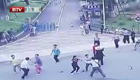 實拍男子樓頂扔磚頭砸傷多人被制服