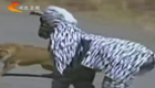 實拍青年假扮斑馬被獅群圍攻驚險逃生