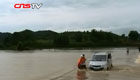 暴雨致江西宜春公路成河 面包車載6人險被沖走