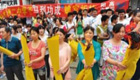 武漢送考家長沿街燒香跪拜 鞭炮禮花同時點燃