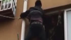 小伙爬防盜窗回家被卡半空