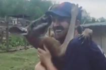 袋鼠主動摟帥哥又親又抱