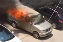 面包車起火 怕殃及無辜車輛司機浴火挪車