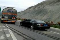 實拍奔馳女司機高速急剎車 引大掛車猛撞