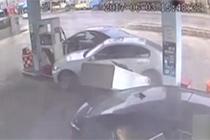 寶馬車撞翻加油機 女司機錯把油門當剎車