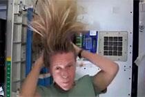 女宇航員演示太空中洗頭