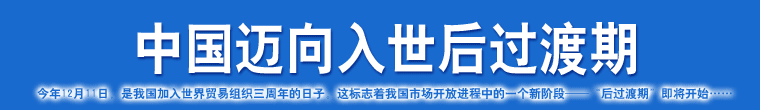 今年12月11日,是我國加入世界貿(mào)易組織三周年的日子。這標(biāo)志著我國市場開放進(jìn)程中的一個新階段——“后過渡期”即將開始……