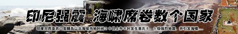 印度尼西亞蘇門答臘島以北海域當?shù)貢r間26日上午8時發(fā)生里氏8.5級強烈地震,并引發(fā)海嘯,東南亞和南亞數(shù)個國家受波及,造成重大人員傷亡。
