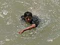 伊拉克警方及救援人員用小船在河中打撈尸體(8月31日 19:03)