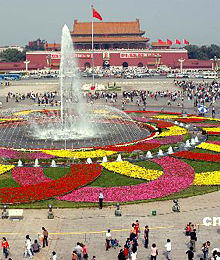 圖:俯瞰天安門廣場噴泉花壇(9月27日 16:15)