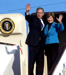 圖:美國總統布什夫婦走下舷梯(11月19日 20:53)