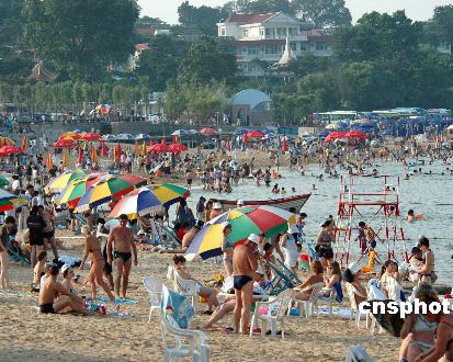 兩萬俄羅斯游客搶灘北戴河 秦皇島豎北戴河品牌(8月26日17:39)
